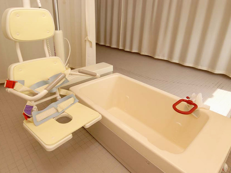ひのき造りの浴槽を使用しています。リフトを使用しても直接でも入浴出来ます。